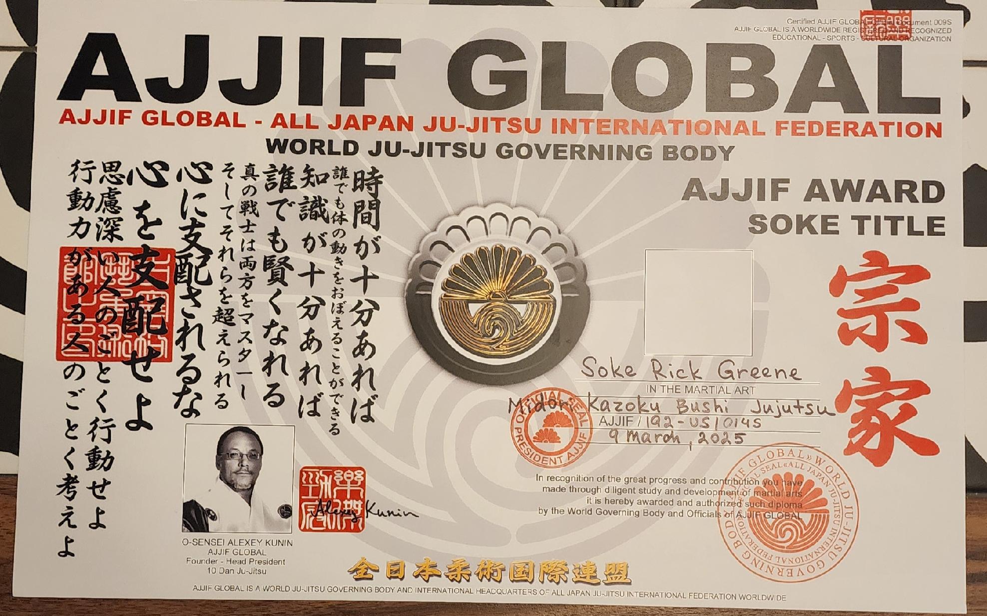 AJJIF Global - All Japan Ju-jitsu International Federation Soke Title. Country of Canada www.ajjif.org